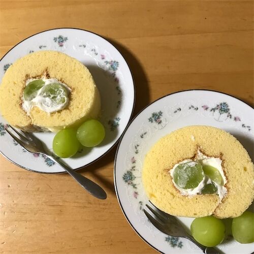 夫が帰国中にできるだけ季節の果物を食べさせてあげたかったので、一通りは食べたと思っていたけれど… 残っていたのがシャインマスカットです。 高額なので手が出ませんでしたが、思い切って買いました。 何粒かはそのまま楽しんで残りはロールケーキにしま…